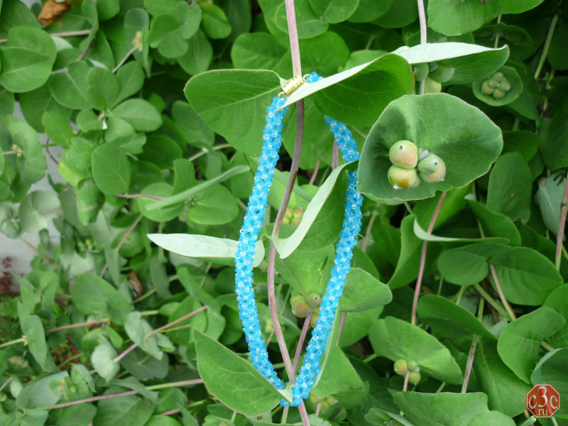 Мягкий жгут из матового бисера яркого цвета, "тянется" Он же, с ошейником "Морская сказка" и кулоном "Небесный цветок"